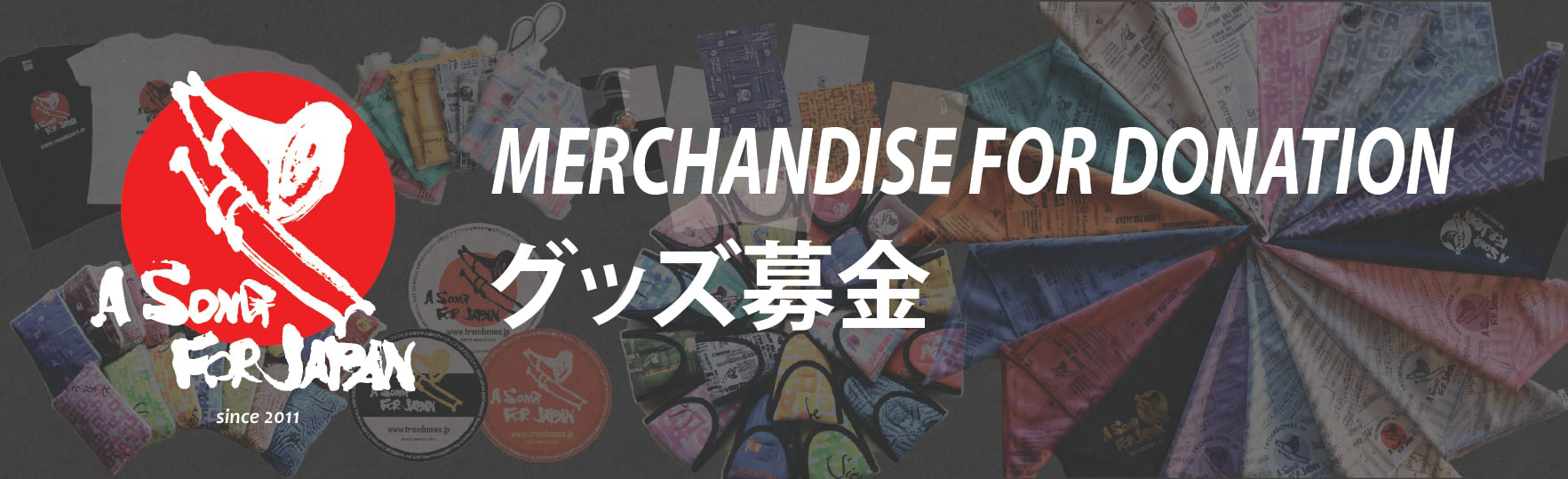 A SONG FOR JAPANプロジェクトでは、2011年4月より「グッズ募金」と題して、Tシャツ・ステッカーなどを製作・販売し、その利益の全額を日本赤十字社にお送りしています。
